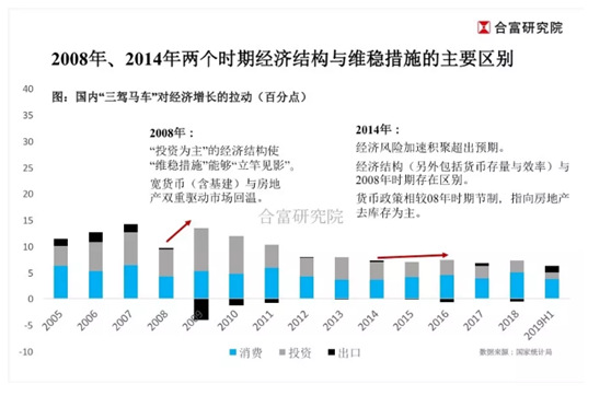由于經(jīng)濟結(jié)構(gòu)、貨幣效率、市場情況有所差異,因而2008與2014年兩個時期的紓困措施雖然同樣涉及貨幣、基建與房地產(chǎn)市場,但政策方向亦有所區(qū)別,在此不作詳述。