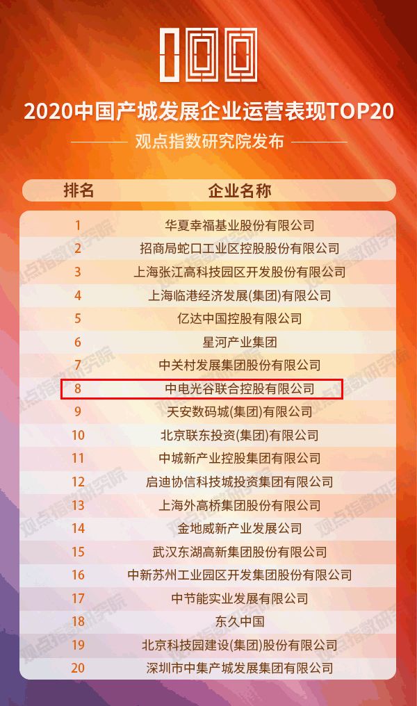 中電光谷榮登“2020中國產(chǎn)城發(fā)展企業(yè)運營表現(xiàn)”十強榜單