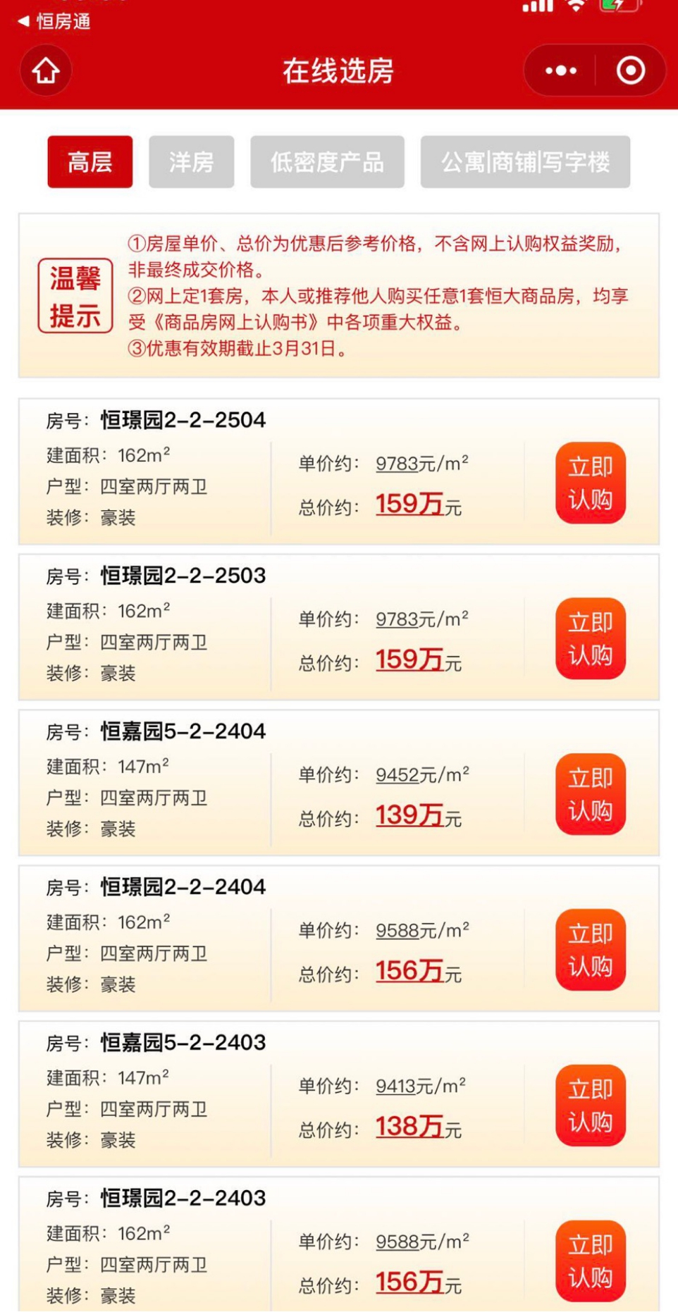 購(gòu)房者不用百般波折,只需在線上找到意向房源,便可輕松拿到恒大房的“出廠價(jià)”。