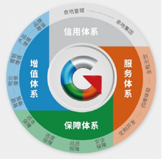 從金地管理的價值體系中可以看出,合作共贏是其核心的價值觀。為了實現(xiàn)“共贏“,金地打造了品牌增值、產(chǎn)品增值、營銷增值、物業(yè)增值、管理增值5項增值服務(wù)。
