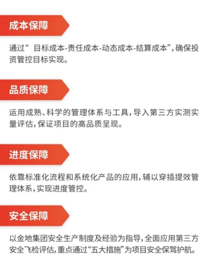 在代建項目中,項目的安全和收益往往是業(yè)主方最看重的。金地管理G體系用成本、品質(zhì)、進度、安全等4大保障,為客戶控制開發(fā)過程中的投資風(fēng)險、為項目安全保駕護航,由此深得客戶信賴。