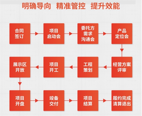 最后,金地管理建立了一套高度細(xì)分的項目管理標(biāo)準(zhǔn)化流程,從合同簽訂開始到履約完成、清算退出,實施高效、精準(zhǔn)、透明的專業(yè)化管控,實現(xiàn)快速響應(yīng)、管理增值。