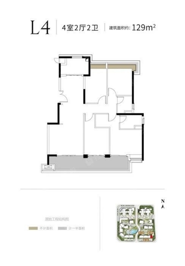 建面約129㎡ 四室兩廳雙衛(wèi)