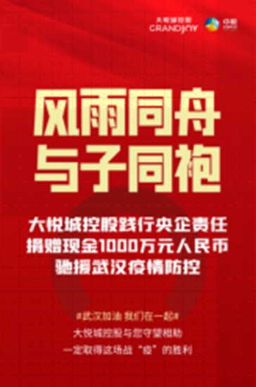 1月29日,面對武漢市醫(yī)療物資緊缺的難題,大悅城控股快速響應,通過武漢市慈善總會捐贈現(xiàn)金1000萬元,馳援抗擊新型冠狀病毒肺炎前線。資金用于為疫區(qū)一線醫(yī)護人員提供必要的幫助和保護,包括采購調運N95口罩、外科口罩、醫(yī)用口罩等防疫急需物資(耗材)。