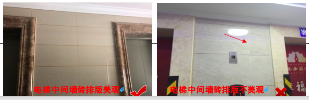 同一面墻上布置兩臺電梯時(shí),中間墻磚必須整磚或均分。