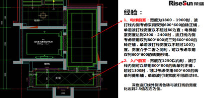 地面波打線以內(nèi)區(qū)域必須保證整磚排版,并且有成熟的經(jīng)驗(yàn)做指導(dǎo)。