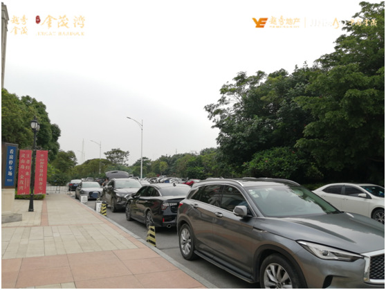 當(dāng)日一早,示范區(qū)外就已被紛至沓來的熱情來賓“圍堵”,開放前約短短1小時(shí)內(nèi),逾500輛私家車爭(zhēng)相駛?cè)耄B素有經(jīng)驗(yàn)的金茂物業(yè)人員都大呼“忙不過來”。附近交通更是一度封紅。