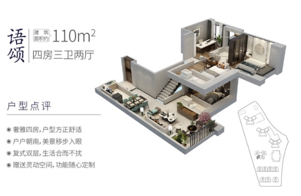 建面約110-155㎡萬博墅居復式4房生活之旅由此開始。
