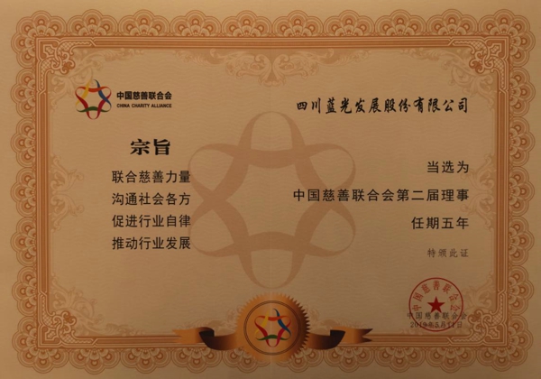 最近兩年,藍光當(dāng)選中國慈善聯(lián)合會理事,加入中國青年志愿者協(xié)會,榮膺各類慈善獎項。
