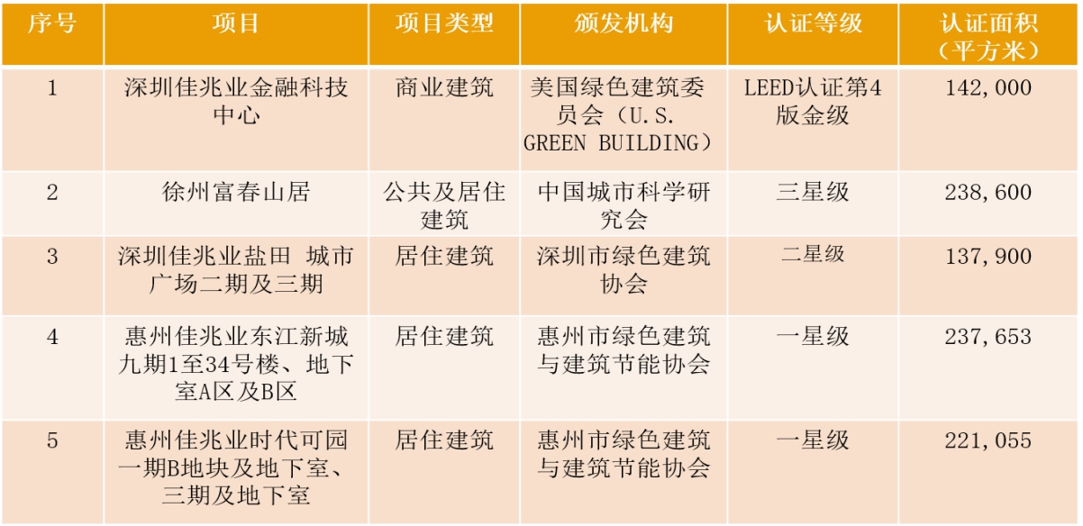 (圖:佳兆業(yè)2019年綠色建筑認(rèn)證項(xiàng)目)