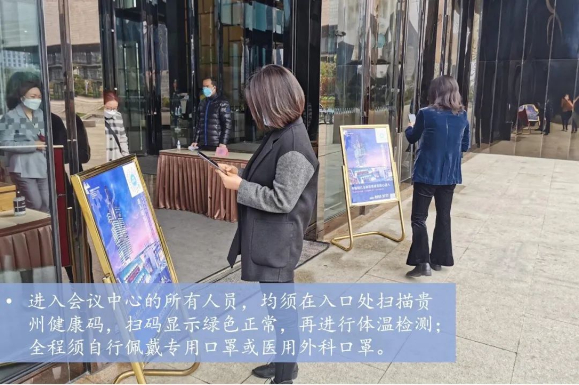 對于疫情中高風(fēng)險(xiǎn)地區(qū)的來客,或個(gè)別涉外的國際性高規(guī)格會(huì)議,銷售部門會(huì)提前與客戶溝通,建議采取“云會(huì)議”+線下會(huì)議的“雙線會(huì)議”模式,從而最大限度降低潛在感染風(fēng)險(xiǎn)。會(huì)場布置方面,貴陽國際生態(tài)會(huì)議中心嚴(yán)格將參會(huì)人數(shù)控制在會(huì)場額定人數(shù)的50%,臺(tái)形擺放嚴(yán)格遵守防控標(biāo)準(zhǔn),做到“加寬、加大、拉開間隔距離”,減少參會(huì)者近距離接觸。
