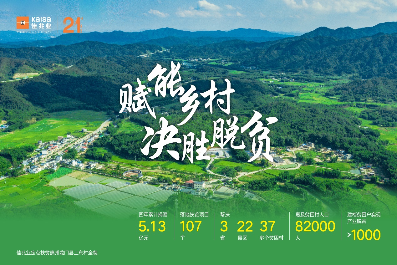 因時(shí)代而興,隨時(shí)代而行。成立21年來(lái),佳兆業(yè)的發(fā)展壯大,離不開(kāi)改革開(kāi)放給予的發(fā)展機(jī)遇,更離不開(kāi)政府及社會(huì)公眾的鼎力支持。不斷奮進(jìn)和常懷感恩是佳兆業(yè)一以貫之的價(jià)值觀,從2010年至今,佳兆業(yè)集團(tuán)已累計(jì)投入超過(guò)7億元用于扶貧事業(yè),推動(dòng)落地各類(lèi)扶貧項(xiàng)目107個(gè),幫扶廣東、廣西、青海等省共15個(gè)縣區(qū)、40多個(gè)貧困村,項(xiàng)目惠及貧困村人口8.2萬(wàn)人,最大程度與社會(huì)共享發(fā)展成果。
