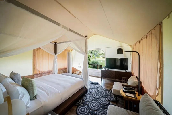 在高端度假酒店系列,木蓮莊則強(qiáng)調(diào)因地制宜,提供休閑度假的多種體驗(yàn)。以本次花都木蓮莊二期發(fā)布為例,項(xiàng)目融合得天獨(dú)厚的自然環(huán)境,匠心獨(dú)運(yùn)地帶來(lái)“庭院”“野奢”等不同風(fēng)格的全新旅居體驗(yàn)——秋山居室內(nèi)靜謐簡(jiǎn)約的設(shè)計(jì)與公共空間的園林景致相互呼應(yīng),一步一景全然讓人領(lǐng)略詩(shī)意般的園林藝術(shù)生活。而臨泉居更有以星空為主題的帳篷客房,時(shí)髦別致的空間設(shè)計(jì)、面面俱到的高端設(shè)施,營(yíng)造出既有品位又富有樂(lè)趣的野奢旅居體驗(yàn)。由此可見(jiàn),木蓮莊集團(tuán)打造了一系列擁有強(qiáng)大“產(chǎn)品設(shè)計(jì)力”的酒店,已然成為行業(yè)精品酒店中的佼佼者。