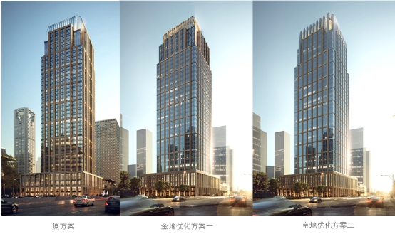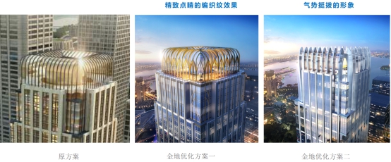 在項(xiàng)目中標(biāo)公示期間,集團(tuán)領(lǐng)導(dǎo)指示代建團(tuán)隊(duì)對(duì)項(xiàng)目原有立面方案進(jìn)行優(yōu)化,金地管理團(tuán)隊(duì)在集團(tuán)產(chǎn)品管理部的指導(dǎo)下,充分借鑒金地國(guó)內(nèi)外開(kāi)發(fā)的寫字樓設(shè)計(jì),在原有方案的基礎(chǔ)之上優(yōu)化出兩款更具現(xiàn)代設(shè)計(jì)感和時(shí)尚的立面方案。新的方案不僅在設(shè)計(jì)上保留與金融城區(qū)域設(shè)計(jì)一致的調(diào)性,更采用現(xiàn)代設(shè)計(jì)手法優(yōu)化大廈外形,使其氣勢(shì)更為挺拔、屋頂更具特色、基座更穩(wěn)重、細(xì)節(jié)更精致,突顯出新華保險(xiǎn)公司的國(guó)際化形象。同時(shí),公司更明確表示將在項(xiàng)目后期管理中實(shí)現(xiàn)不突破總投資額情況下的進(jìn)行立面優(yōu)化,體現(xiàn)出金地管理的專業(yè)價(jià)值。
