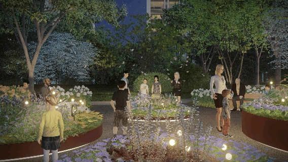 夜間花園:社區(qū)生活的延續(xù),視覺的場(chǎng)景可刺激對(duì)其他感官的驚喜和興奮。夜間適當(dāng)活動(dòng)有利于改善人體睡眠質(zhì)量,通過互動(dòng)燈光裝置吸引人群參與,可讓白天的活動(dòng)場(chǎng)地在夜間煥發(fā)新的可能。