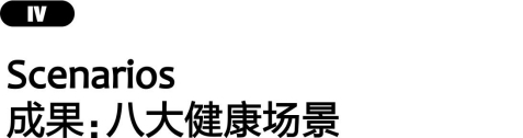 社區(qū)價(jià)值觀的重構(gòu)為規(guī)劃設(shè)計(jì)以及運(yùn)營服務(wù)提供了新的方向,但僅有價(jià)值觀不夠,我們希望“健康”是可被感知的,是能夠?yàn)榫用裉峁┓?wù)的。因此,八大健康場(chǎng)景應(yīng)運(yùn)而生。
