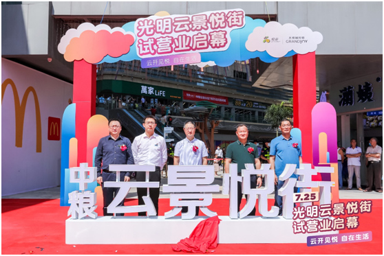 大悅城控股黨委委員、副總經(jīng)理、華南大區(qū)公司總經(jīng)理李晉揚,大悅城控股商業(yè)管理中心副總經(jīng)理、華南大區(qū)公司副總經(jīng)理、商業(yè)管理中心總經(jīng)理張黎,華南大區(qū)公司總經(jīng)理助理李柳賓、路劍鋒及商戶代表華潤萬家LIFE,共同見證區(qū)域自在生活新樣板的誕生。