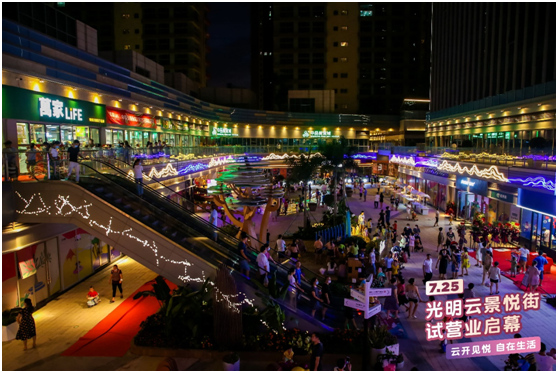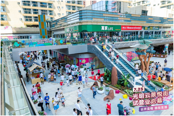 夏花綻放時,聞風香自來。7月25日,在熱烈的夏風中,大悅城控股華南大區(qū)旗下首個社區(qū)商業(yè)--光明云景悅街試營業(yè)啟幕。雖然炎炎夏日,但街區(qū)內(nèi)客流如織,人氣爆棚。