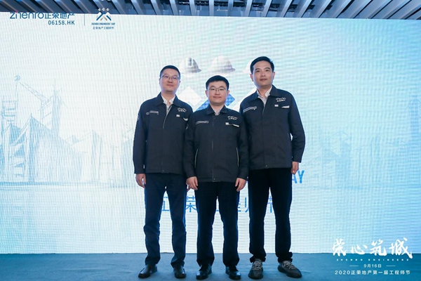 正榮地產(chǎn)總裁助理王磊、正榮地產(chǎn)工程成本中心副總經(jīng)理陳濤、工程部總經(jīng)理陳煜共同上臺(tái)啟動(dòng)工程師節(jié)的品牌LOGO發(fā)布儀式,以身披好房盔甲與頭戴安全帽的工程師為設(shè)計(jì)基礎(chǔ),傳遞“榮匠攜手同行,打造幸福夢想家”的愿景文化.