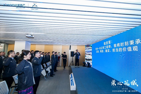隨后,正榮地產(chǎn)工程成本中心工程部總經(jīng)理陳煜發(fā)表工程管理主題的演講,并帶領(lǐng)全體工程師、連線全國多個(gè)大區(qū)進(jìn)行莊嚴(yán)宣誓:”身為一名正榮工程師,我將時(shí)刻秉承正直、精進(jìn)、踏實(shí)、擔(dān)當(dāng)?shù)膬r(jià)值觀,時(shí)刻牢記“打造幸福夢想家”的愿景,堅(jiān)決維護(hù)公司形象和業(yè)主利益,堅(jiān)守工程品質(zhì)!“堅(jiān)定不移的誓詞,將全場活動(dòng)推向高潮。