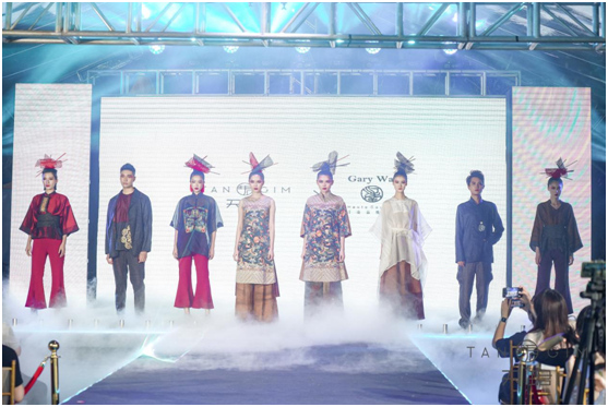 影片落幕,正式進入屈汀南香云紗非遺文化時裝大秀。一群身著華服的模特徐步走上舞臺,以東方粹韻風(fēng)姿,向來賓呈現(xiàn)千年西關(guān)的獨特魅力。