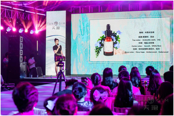 盛況沒有終點,驚喜接踵而來,著名調(diào)香師Mandy Chueng現(xiàn)場發(fā)布為天珺專屬定制的主題香氛,這款香氛將于今晚正式命名為【潮汐】,天珺之汐浪潮已起。