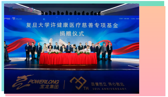 “許健康公益基金會(huì)”以“傳承慈善文化、促進(jìn)社會(huì)發(fā)展”為宗旨,主要致力于扶貧、濟(jì)困,促進(jìn)教育、科學(xué)、文化、衛(wèi)生、體育等事業(yè)的發(fā)展,其基金數(shù)額均來(lái)源于許健康家族?;顒?dòng)現(xiàn)場(chǎng),寶龍集團(tuán)董事局主席許健康代表該基金會(huì)向復(fù)旦大學(xué)捐資5億元,用于合作建設(shè)復(fù)旦大學(xué)國(guó)際臨床醫(yī)學(xué)中心項(xiàng)目。這次捐贈(zèng)將為復(fù)旦大學(xué)上海醫(yī)學(xué)院的教育培養(yǎng)提供更加強(qiáng)有力的支撐,為我國(guó)醫(yī)療健康事業(yè)輸送更多人才。