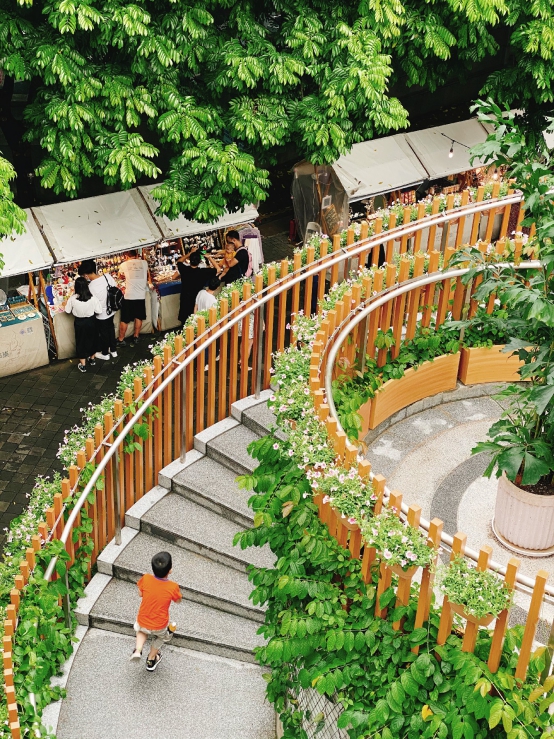 此外,新里由上海新天地及嶺南天地建筑師Ben Wood團隊設計。在延續(xù)嶺南古建筑風貌的同時融入現(xiàn)代玻璃幕墻、原木結(jié)構等提升空間通透性,并遵循集團可持續(xù)發(fā)展理念,堅持綠色建筑原則,充分利用“福祿樹”區(qū)域的天然條件,打造別致庭院休憩功能區(qū),大樹旁還建造了綠植旋轉(zhuǎn)樓梯,為這片區(qū)域增添韻律感。三層半開放式空間內(nèi)穿插了露臺、連廊、過道等功能分區(qū),打造靈動多變的第三空間,為公眾提供健康、舒適、自然和諧共生的公共空間,滿足日常聚會、社交體驗需求。