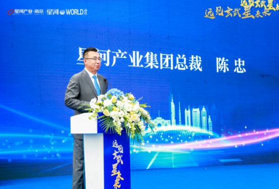 星河產(chǎn)業(yè)集團(tuán)總裁陳忠首先發(fā)表歡迎致辭,對(duì)各界嘉賓的關(guān)注與支持表達(dá)了衷心的感謝。回溯三十二年集團(tuán)創(chuàng)業(yè)史,陳總從多個(gè)角度展現(xiàn)星河的發(fā)展歷程。星河控股集團(tuán)布局29城,資產(chǎn)超千億,擁有員工超8000人,旗下匯集地產(chǎn)、金融、產(chǎn)業(yè)、商置、物業(yè)五大業(yè)務(wù)集團(tuán),致力成為城市運(yùn)營(yíng)引領(lǐng)者。