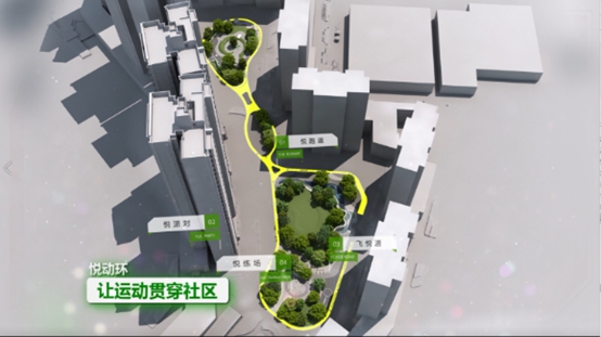 鼓勵導向的運動系統(tǒng):以悅動環(huán)串聯(lián)全區(qū)的運動系統(tǒng),精心挑選的無重力器械可帶來合作、競賽以及親子運動體驗,業(yè)主還可通過云鄰社區(qū)App自行租用架空層投影、瑜伽球等運動設(shè)備。