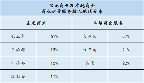 在香港上市的寶龍商管和卓越商企服務(wù)的商業(yè)營運服務(wù)地區(qū)分布,便可以證明這一點。