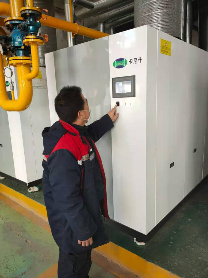 圖:曉廊坊維修工啟動燃氣鍋爐