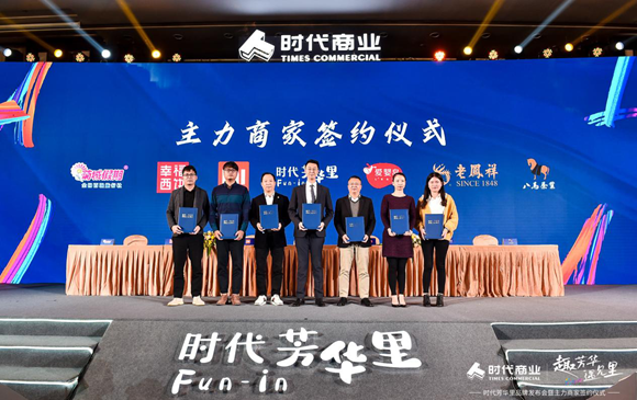 發(fā)布會(huì)現(xiàn)場(chǎng),時(shí)代芳華里首批簽約品牌亮相,百佳永輝Bravo超市、星河巨幕影城、肯德基、華為等品牌正式宣告入駐。