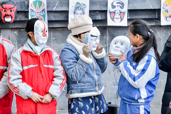 課堂設(shè)立在已有超過一千年歷史的豐陽古村的中央戲臺(tái)上,孩子們在三位“田埂花開”藝術(shù)素質(zhì)支教老師的帶領(lǐng)下,通過講解和體驗(yàn)重新認(rèn)識(shí)他們熟悉又陌生的本土文化,創(chuàng)作出一個(gè)個(gè)形象豐富的祈劇臉譜,并逐一與大家分享自己的靈感來源。