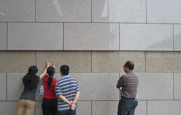 除了正常的驗(yàn)收標(biāo)準(zhǔn),還有一道獨(dú)特的驗(yàn)收標(biāo)準(zhǔn)。當(dāng)監(jiān)工人員環(huán)視工程時(shí)候,即便石材色澤出現(xiàn)微小反差,留給工程人員的只有一個(gè)字“換”。但只換一兩塊石材卻會(huì)導(dǎo)致石材整體配色出現(xiàn)問(wèn)題,因此往往是成批地?fù)Q。