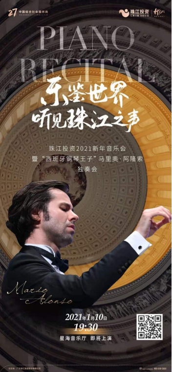 2021年1月10日,“樂鑒世界 悅見珠江 | 珠江投資2021新年音樂會”將在廣州星海音樂廳如期舉行。作為一場喚醒五感的4D音樂會,珠江投資將邀請西班牙國寶級鋼琴家馬里奧·阿隆索·愛列羅,與珠江投資的朋友們共同啟幕新年美好生活。