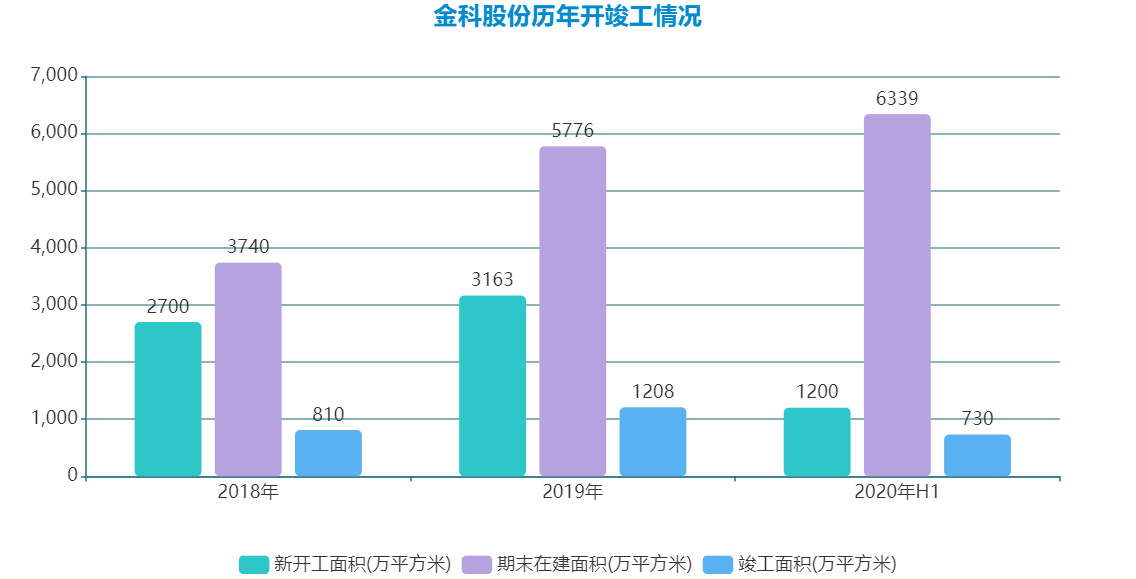據(jù)悉,2020年,金科計(jì)劃新開工面積約3600萬平方米,年末在建面積約7300萬平方米,但上半年僅新開工730萬平方米。