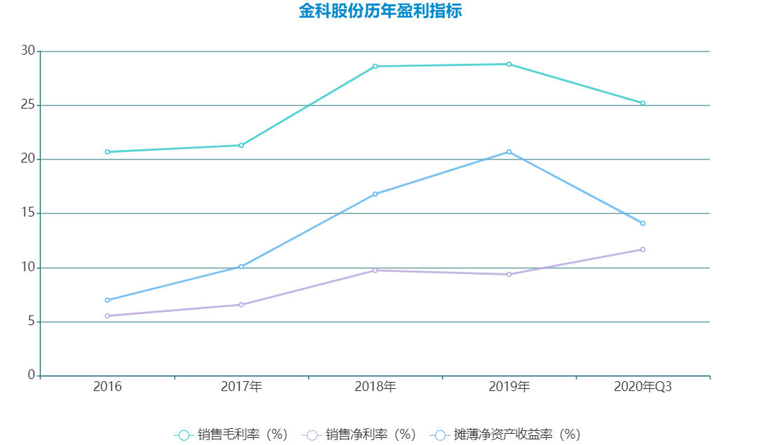 數(shù)據(jù)顯示,2020年第三季度,金科受毛利率下滑及少數(shù)股東權(quán)益占比上升影響,歸母凈利潤(rùn)下降40.9%至8.21億元。受結(jié)算結(jié)構(gòu)影響,前三季度整體毛利率同比降4.9個(gè)百分點(diǎn)至25.2%。