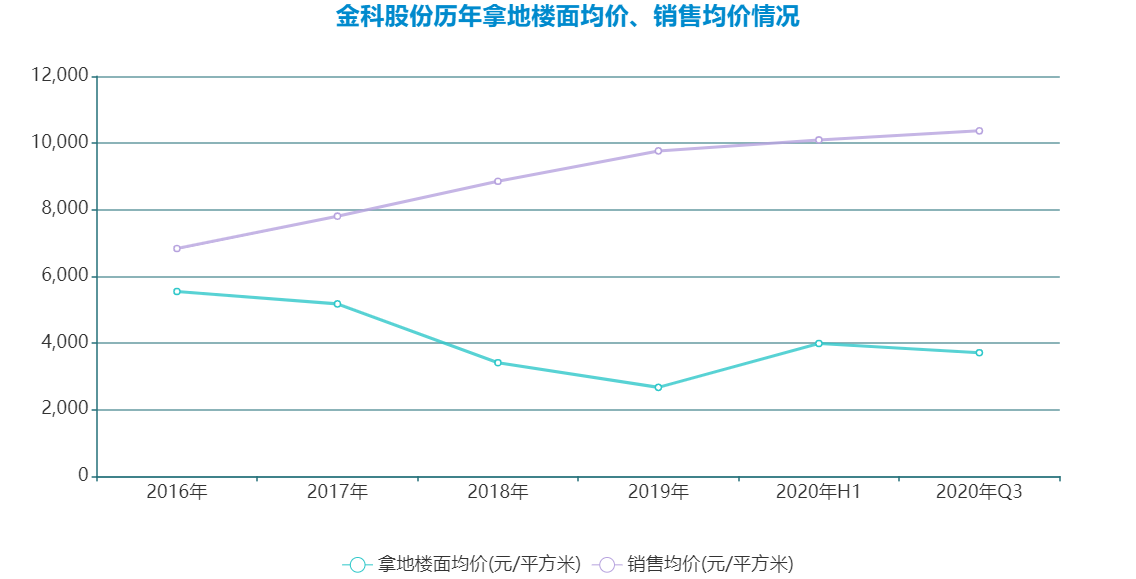 2020年前三季度,金科拿地銷售面積比達(dá)140%,平均樓面地價(jià)較2019年上升39%至3709元/平方米,地價(jià)房?jī)r(jià)比較2019年提升8.4個(gè)百分點(diǎn)至35.8%。