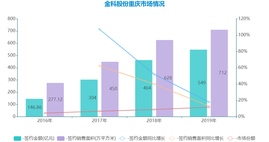 而且不可忽視的是,近些年金科在大本營重慶的市場(chǎng)份額仍不斷增加,2019年占有率達(dá)到11.66%,同比增長(zhǎng)2個(gè)百分點(diǎn),簽約銷售金額穩(wěn)居第一位。