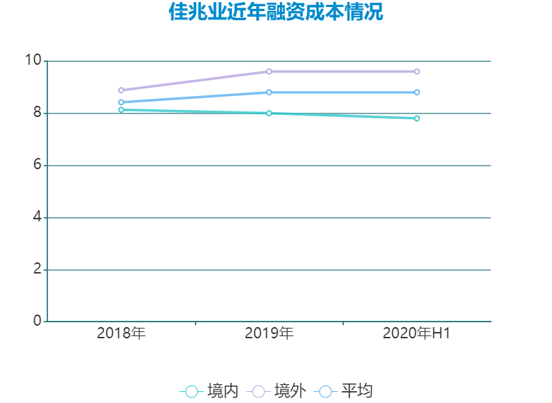 2020上半年,佳兆業(yè)共發(fā)行8億5年期美元債券,境外新增融資成本為8.2%,較2019年下降290個基點。