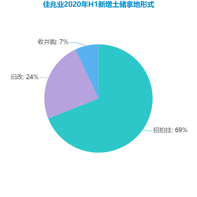 對比2019年上半年,佳兆業(yè)新增土地儲備按權(quán)益地價劃分約43%為招拍掛獲得,約35%為收并購獲得,余下22%通過舊改獲得,招拍掛占比有所提升。