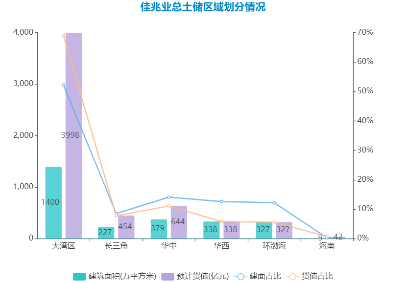 截至2020年上半年,佳兆業(yè)總土儲2680萬平方米,其中大灣區(qū)占比52.2%,長三角占比8.5%、華中占比14.1%,環(huán)渤海占比12.2%。
