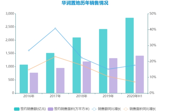 2020年,華潤置地定下銷售目標2620億元,最終全年累計總合同銷售金額約2850.35億元,完成全年目標的109%。