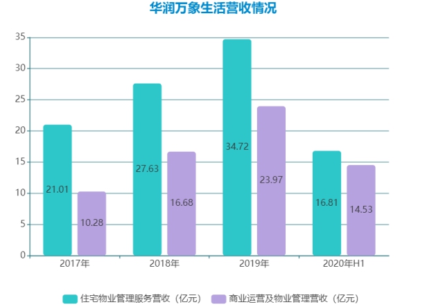 據(jù)了解,商業(yè)運營物業(yè)管理是華潤置地綜合商業(yè)物業(yè)開發(fā)及投資業(yè)務的一部分,不另向購物中心索取商業(yè)運營服務的費用。自2020年1月起,商業(yè)運營作為獨立的創(chuàng)收業(yè)務,確定業(yè)務收入。