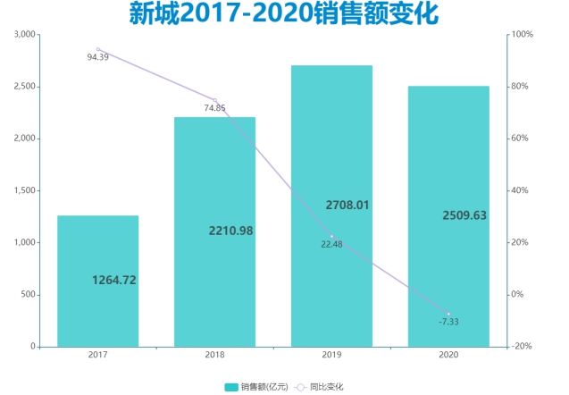 投資者真正在意的是銷售額下滑,這個數(shù)字會切實影響到新城后兩年的業(yè)績走向,而行業(yè)地位下降造成的影響,也是客觀的。