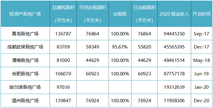 2020年上半年受到疫情影響下,只有一家輕資產(chǎn)的哈爾濱吾悅廣場在1月份開業(yè),且運營不是很順利。