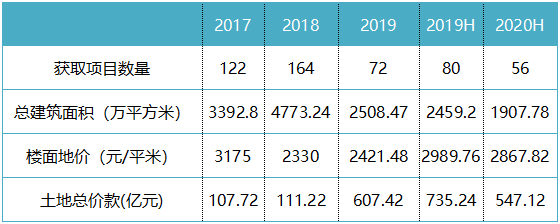 據(jù)公告披露,新城上半年新增土地儲備56幅,總建筑面積1907.78萬平方米,平均樓面地價為2867.82元/平方米??梢?,無論是項目數(shù)量還是新增建筑面積都是近年低位,但均價相較2019年全年卻上升了不少。