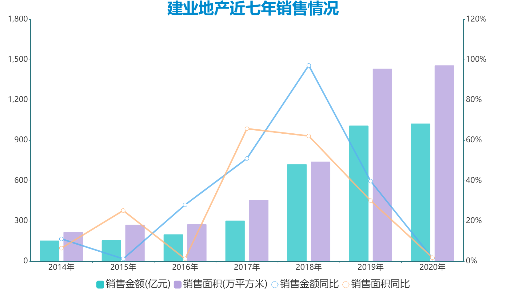 2019年,建業(yè)地產成為國內首個于單一省份達成銷售額超千億元的房企,錄得物業(yè)銷售金額1011.5億元;2020年,在房地產行業(yè)下行周期疊加新冠疫情影響下,建業(yè)地產錄得簽約銷售額1026.42億元。
