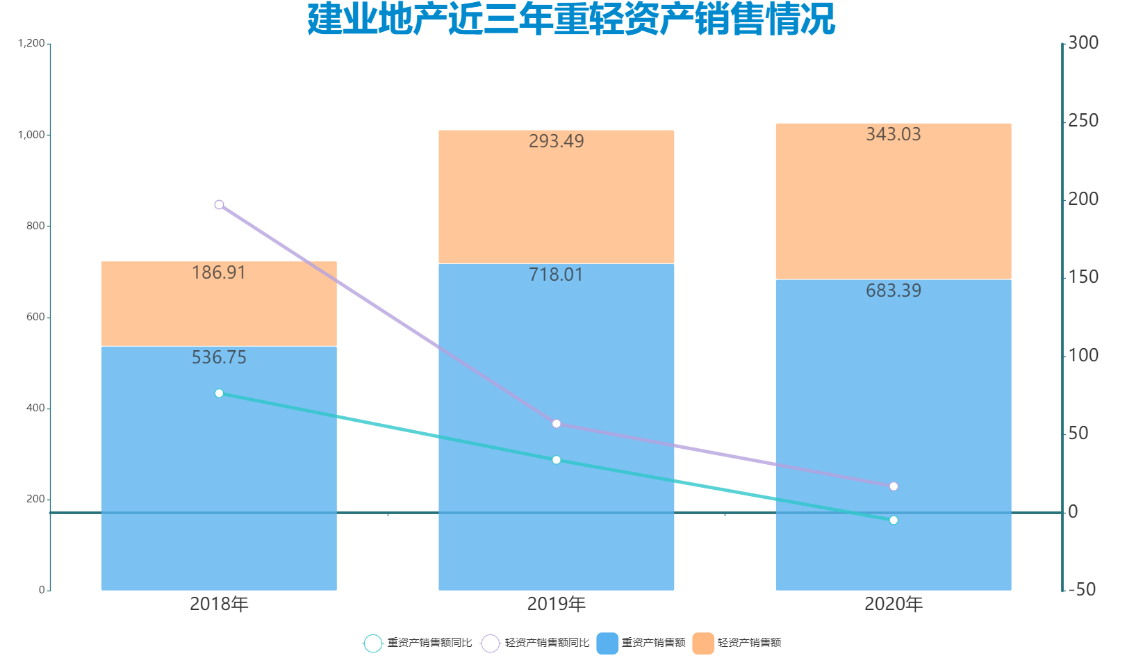 將建業(yè)的表現(xiàn)放置于大環(huán)境來看,的確可圈可點,畢竟房地產市場已進入深度調整和轉型期,再加上2020年上半年疫情影響,整個行業(yè)已步入下行周期,在這樣的背景下,建業(yè)依靠“輕重結合”模式保持住增長勢頭已實屬不易。
